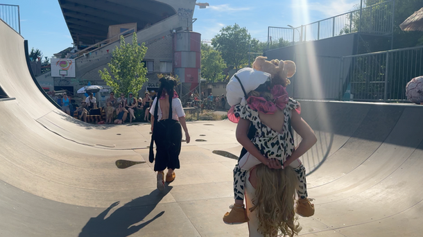 An intergenerational performance that uses costume, movement and voice to explore the domesticated female body. Working with my daughter Mathilde, and dancer / choreographer Nicole Berndt-Caccivio, we embody a pack of 3 show dogs that perform a series of ‘tricks’ for the audience, becoming increasingly unruly, disobedient, and 'feral' as the performance unfolds.