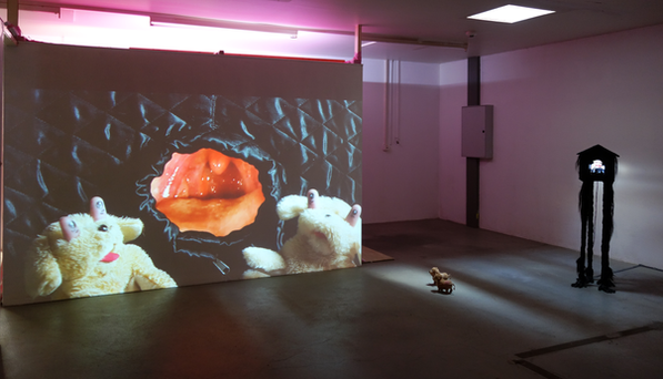 Blending video, sound, and sculptural elements, the installation explores the ambivalent terrain of maternal love—between attachment and autonomy, instinct and education, tenderness and agression. Inspired by the she-wolf from Rome’s founding myth, the work offers a tender, comical, and at times unsettling portrait of a hybrid wolf-mother, Trix, and her two pups. The multi-channel installation draws the audience into a “fever dream” of interspecies motherhood, questioning ideals of unconditional love and the social expectations that shape reproductive labour.